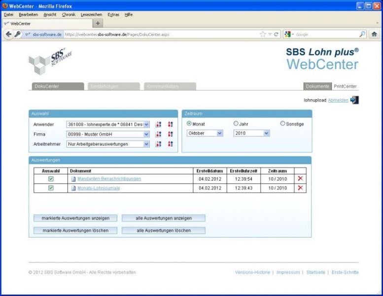 Hier finden Sie Ausdrucke verschiedener Musterfirmen aus dem Entgeltabrechnungssystem ADDISON SBS Lohn.
